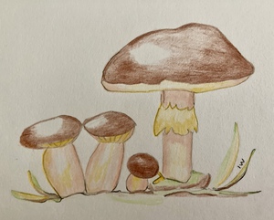 2025Paddenstoeltjes getekend met inktzwammeninkt.